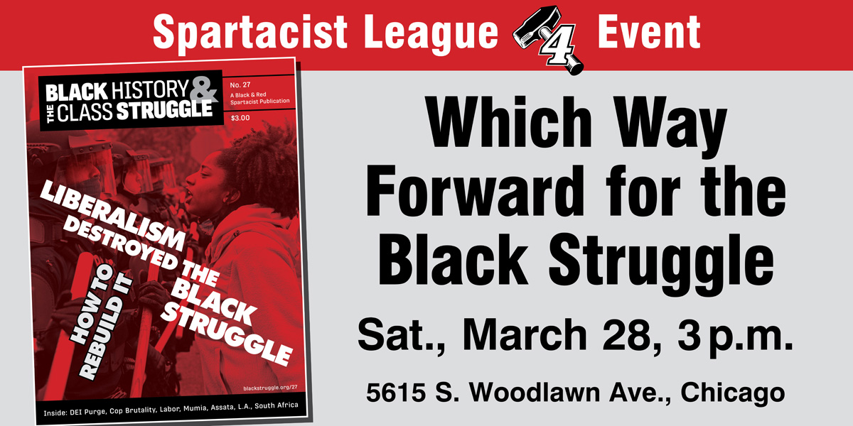 The Spartacist League/U.S. has relaunched the journal Black History & the Class Struggle with the publication of issue No. 27. This journal seeks to arm black and workers struggle with a program to win. As Trump ramps up his attacks, we need a new strategy to advance black struggle today. Come to a discussion of the contents, available here: blackstruggle.org/27
